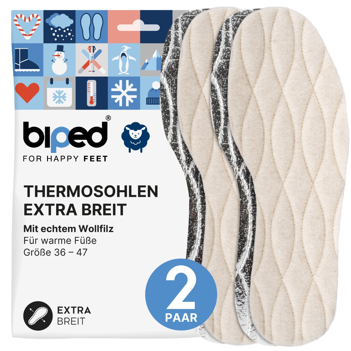Wir empfehlen biped extra breite Thermosohlen für Schuhe und Stiefel mit weiter Passform — endlich warme Füße, auch bei Minusgraden