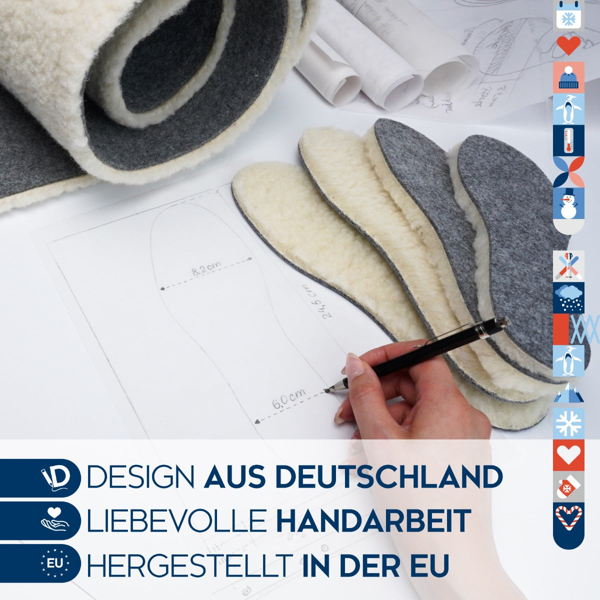 Kuschelig weiche Lammwoll Sohlen für angenehme Fußwärme. Komfort Sohle für die kalte Jahreszeit.