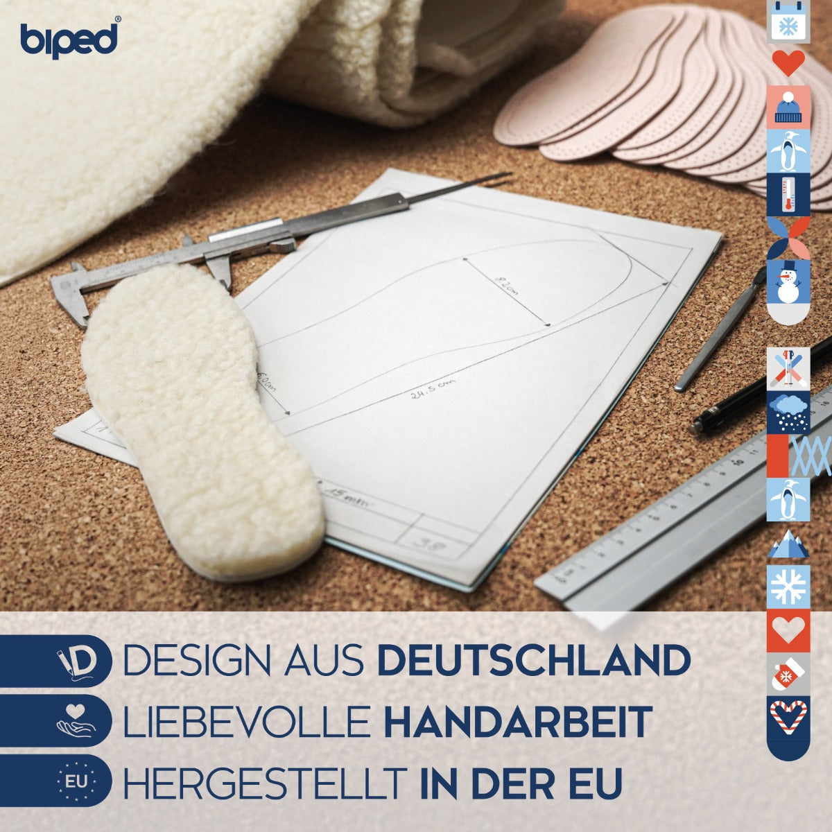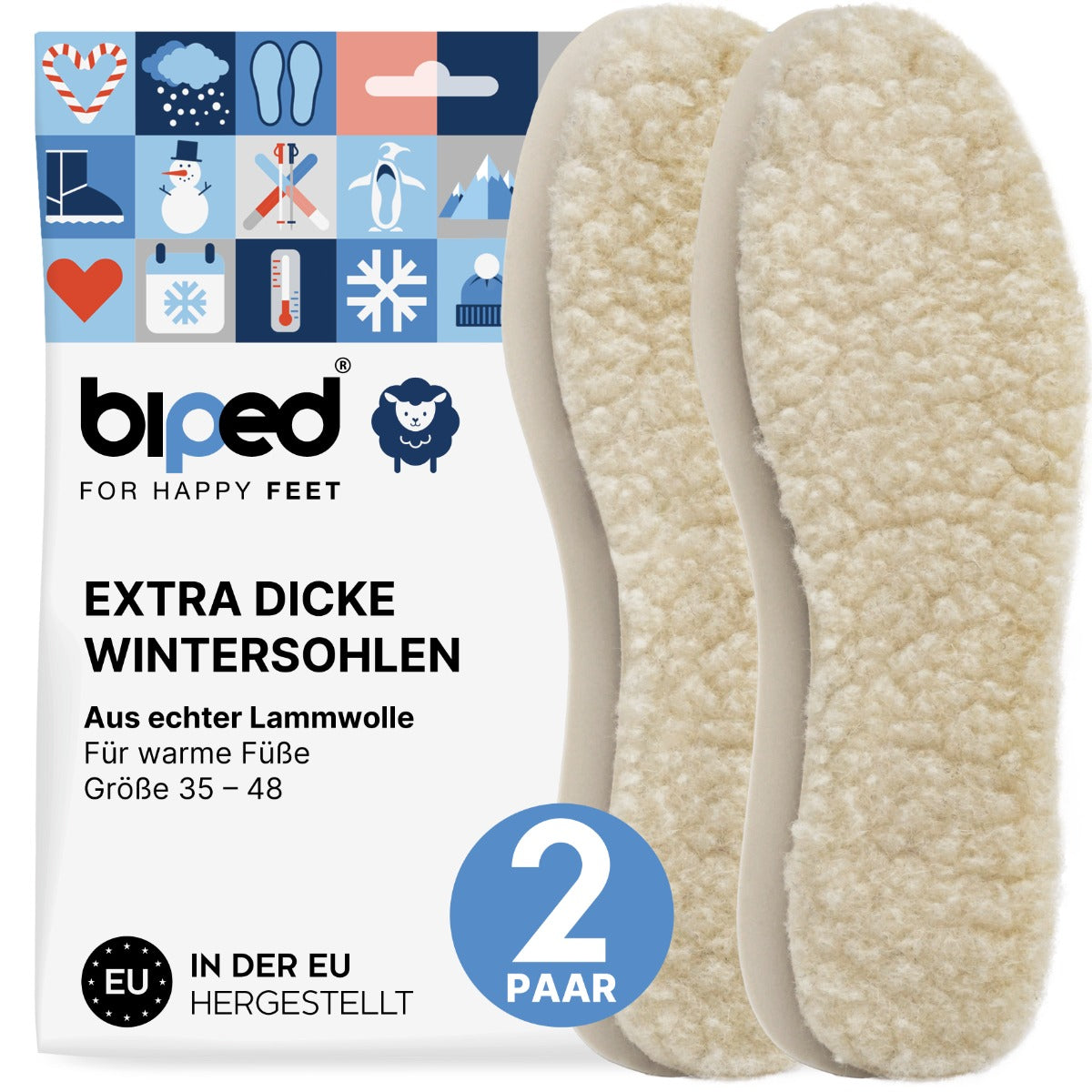biped 2 Paar Lammwollsohlen - Extra dicke Einlegesohlen aus echter Lammwolle - Wärmende Schuheinlagen für Damen und Herren - Hergestellt in der EU