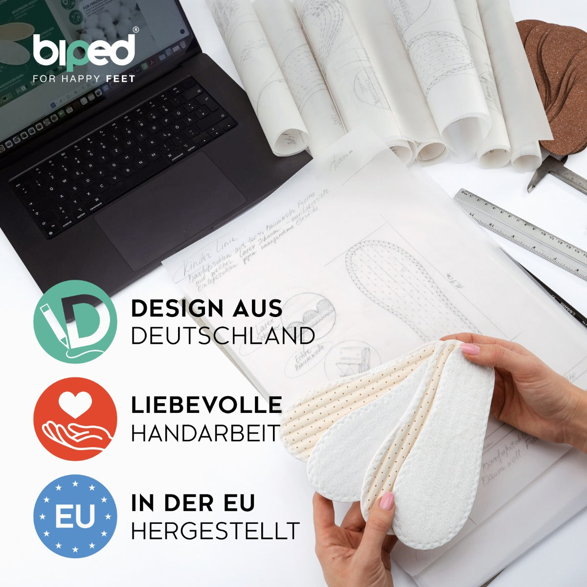 HERGESTELLT IN DER EU: Sie unterstützen mit Ihrem Kauf europäische Qualitätsarbeit und faire Arbeitsbedingungen. Unsere Kindersohlen werden sorgfältig und mit viel Liebe von Hand gefertigt.