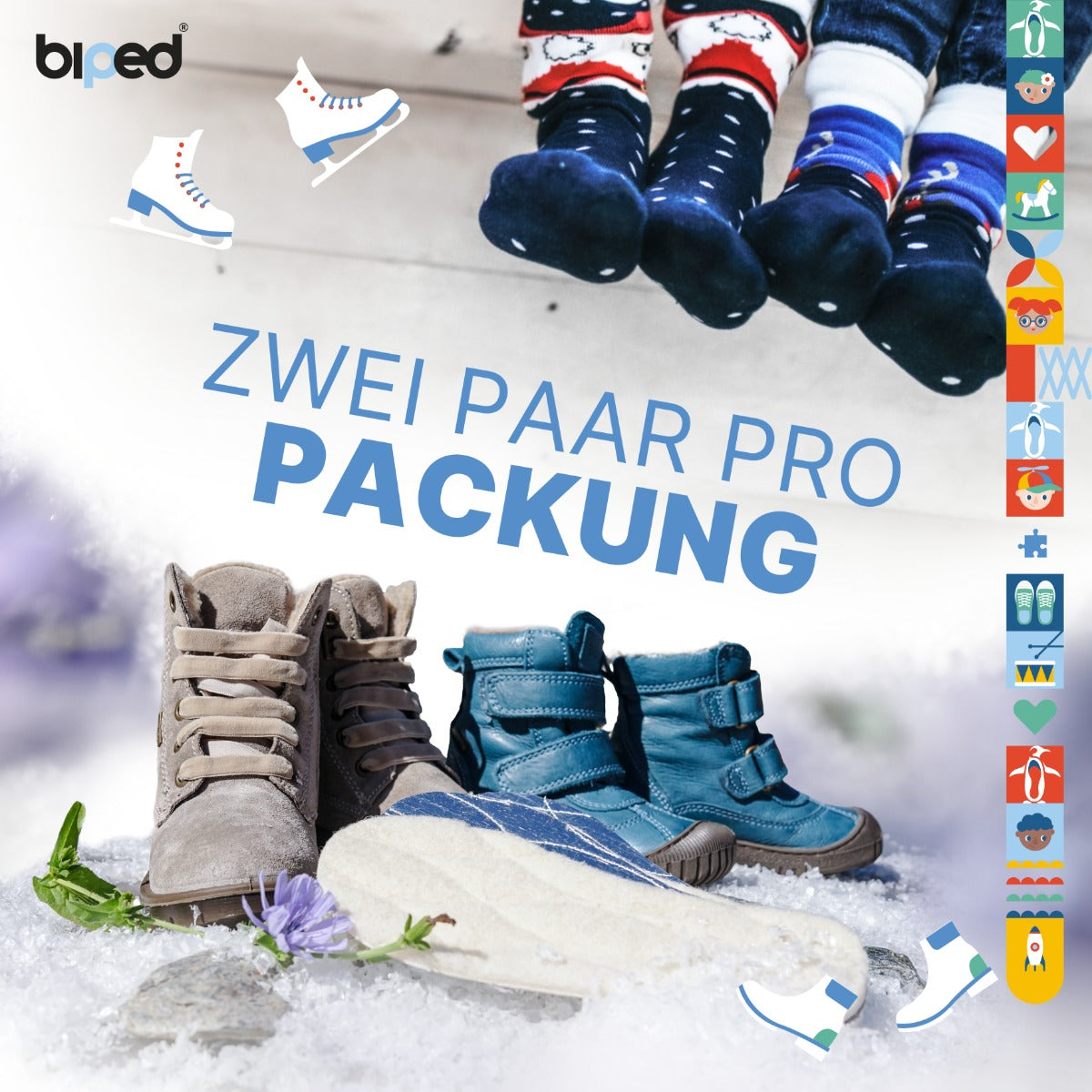 Unsere biped Thermo Einlegesohlen sind luftdurchlässig, hautsympathisch und auch für empfindliche Kinderfüße bestens geeignet. Biped Thermo Einlegesohlen mit echter Lammwolle und Aluminium Unterseite halten die Füße Ihres Kindes zuverlässig warm.