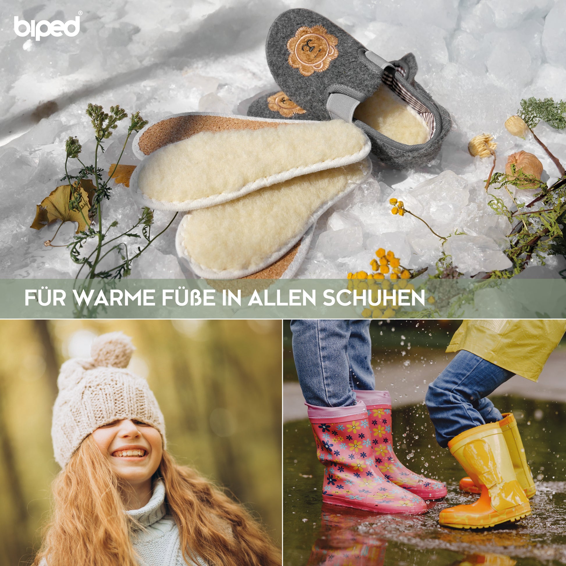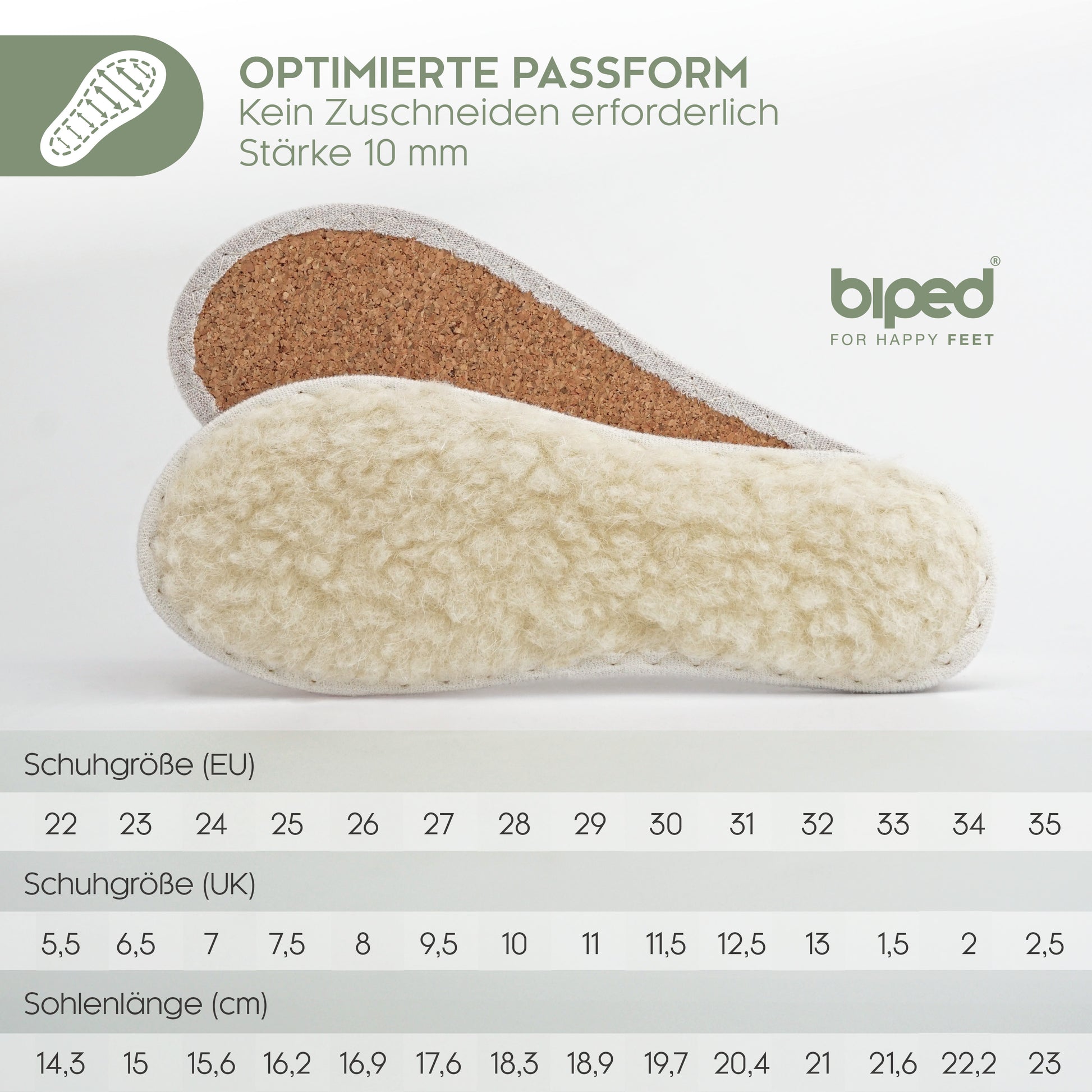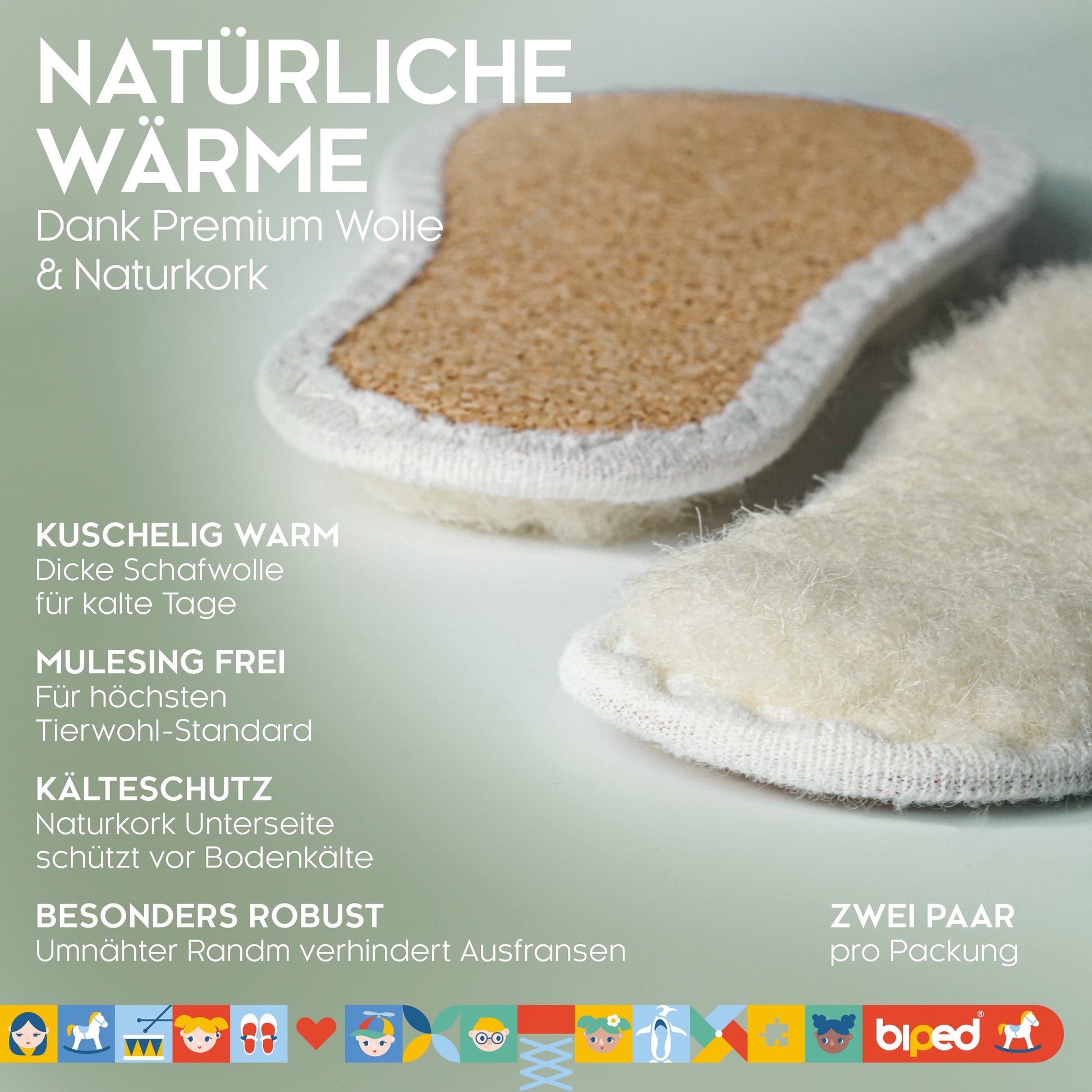 biped 2 Paar Kinder Winter Einlegesohlen aus Schafwolle und echtem Kork - Wärmende Schuheinlagen mit umnähtem Rand