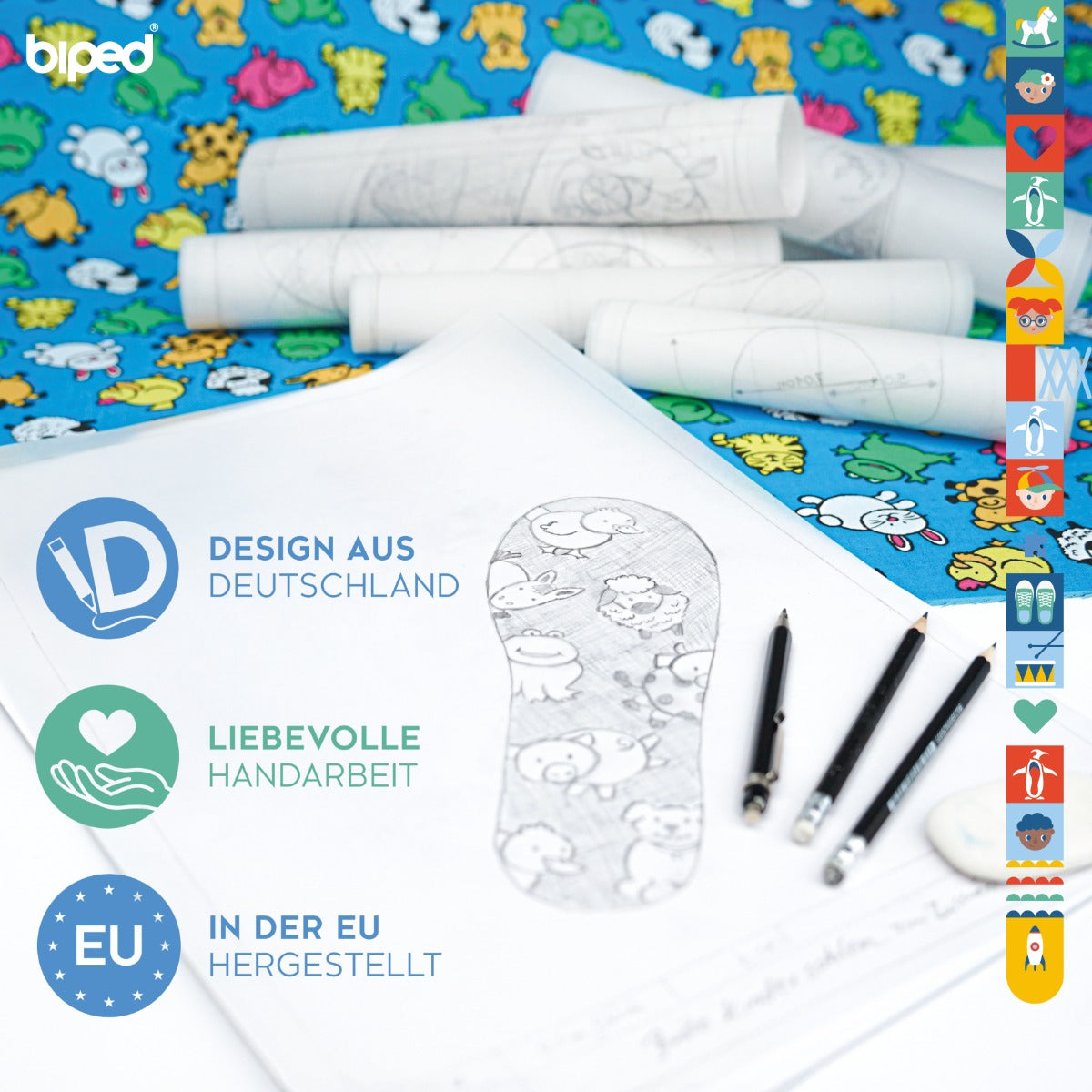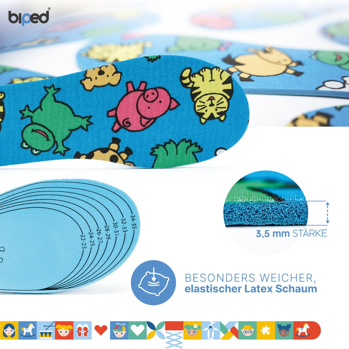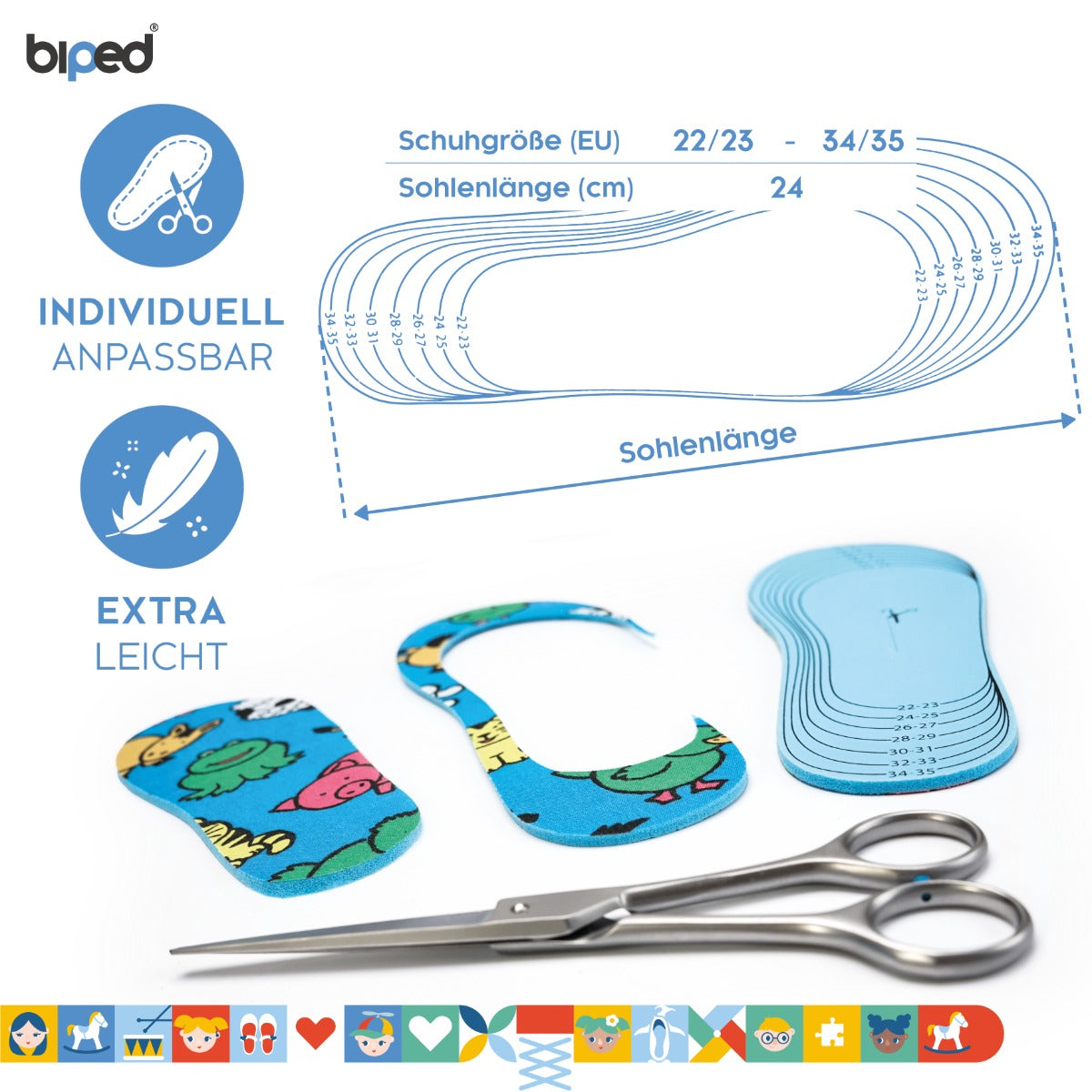 biped 2 Paar Kinder Einlegesohlen - Besonders weiche Sohlen zum Zuschneiden - Bunte Schuheinlagen für alle Kinderschuhe, Stiefel, Hausschuhe und Gummistiefel