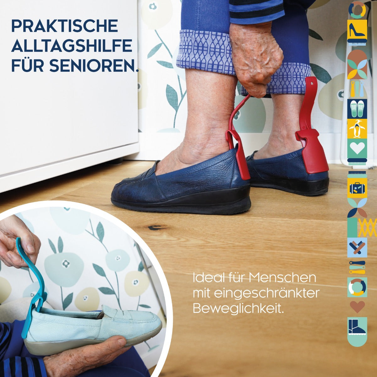 IDEAL FÜR SENIOREN: Erleichtert das Anziehen für Senioren und Menschen mit zittrigen Händen. Der Schuhlöffel bleibt fest am Schuh, sodass weniger Kraft und Koordination nötig sind.