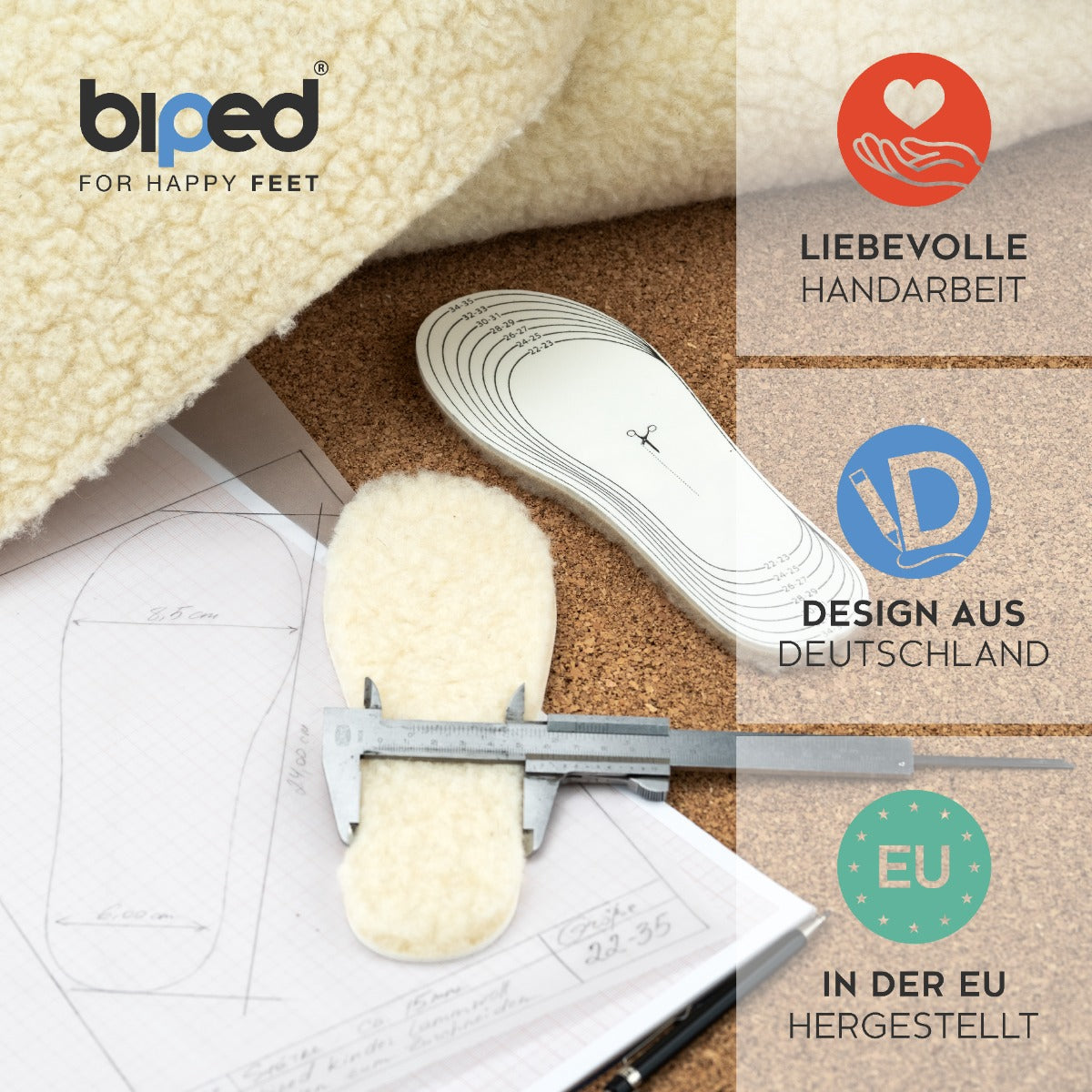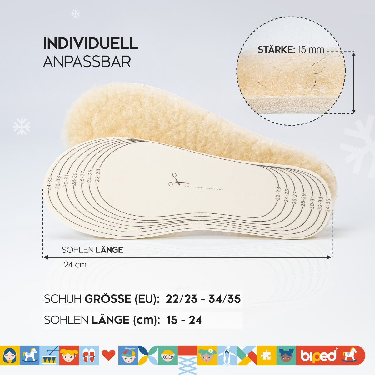biped warme Einlegesohlen für Kinder - mit echter Lammwolle und Naturlatex - zum selbst zuschneiden