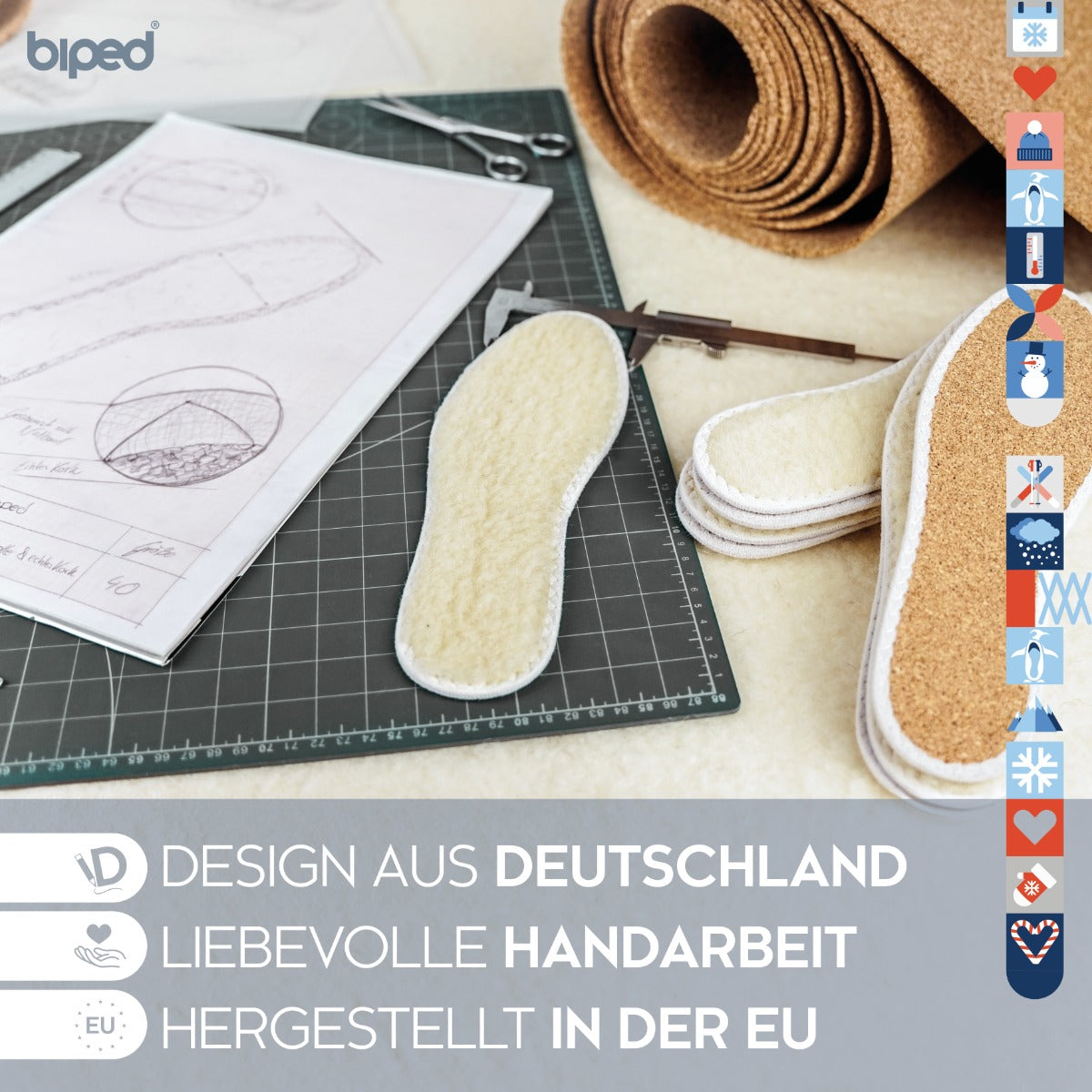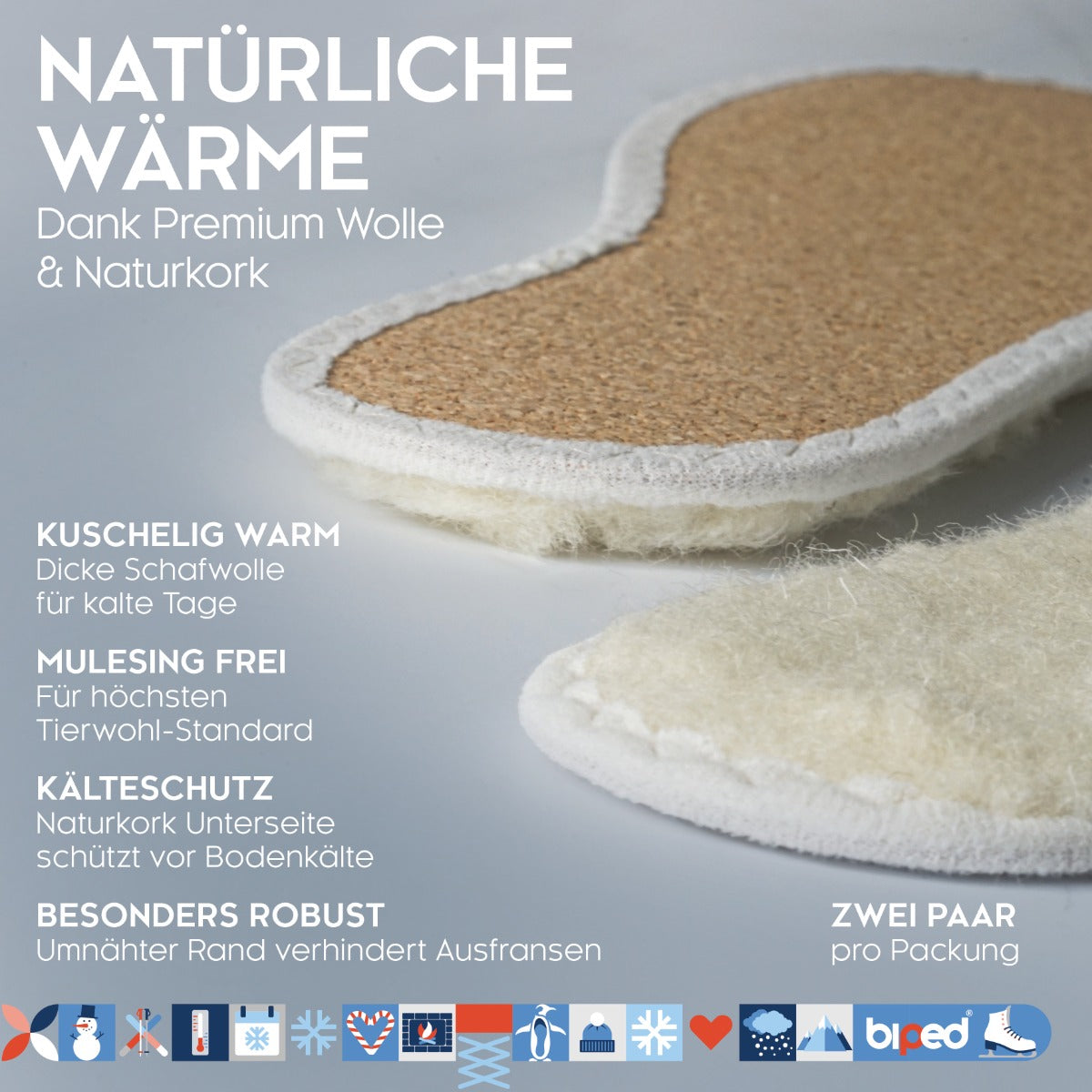 biped 2 Paar Wintersohlen aus Schafwolle und echtem Kork z2736