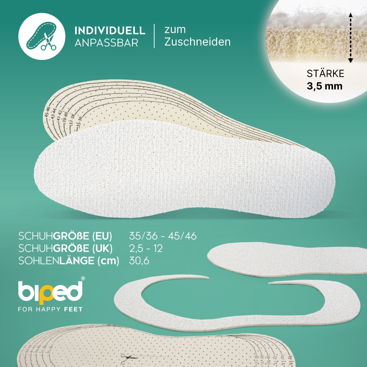 biped 3 Paar Barfußsohlen zum Zuschneiden - Frottee Einlegesohlen aus 100 % Baumwolle und weicher Latex Dämpfung - Schuheinlagen gegen Fußgeruch und Bakterien