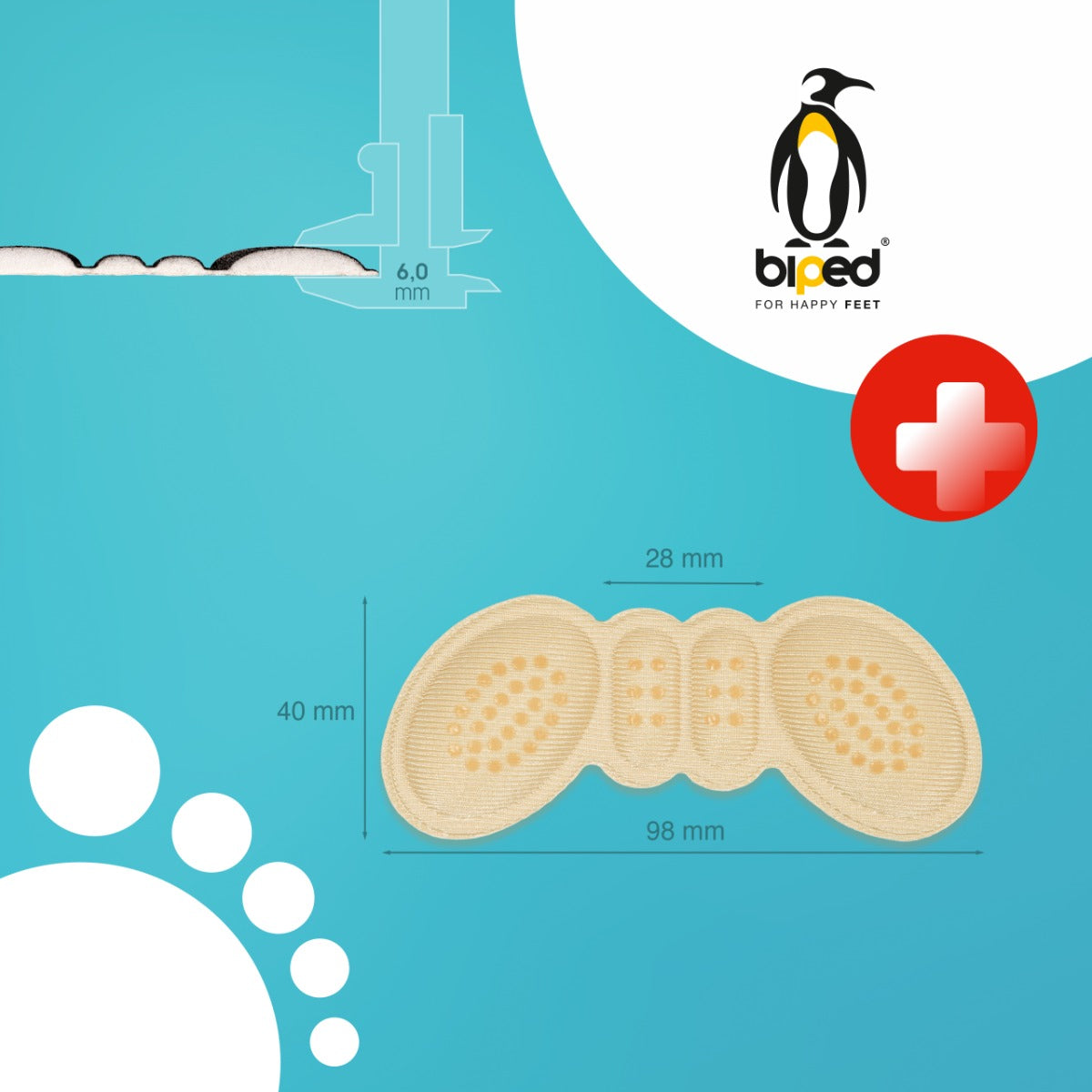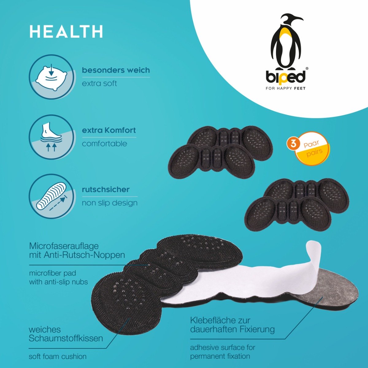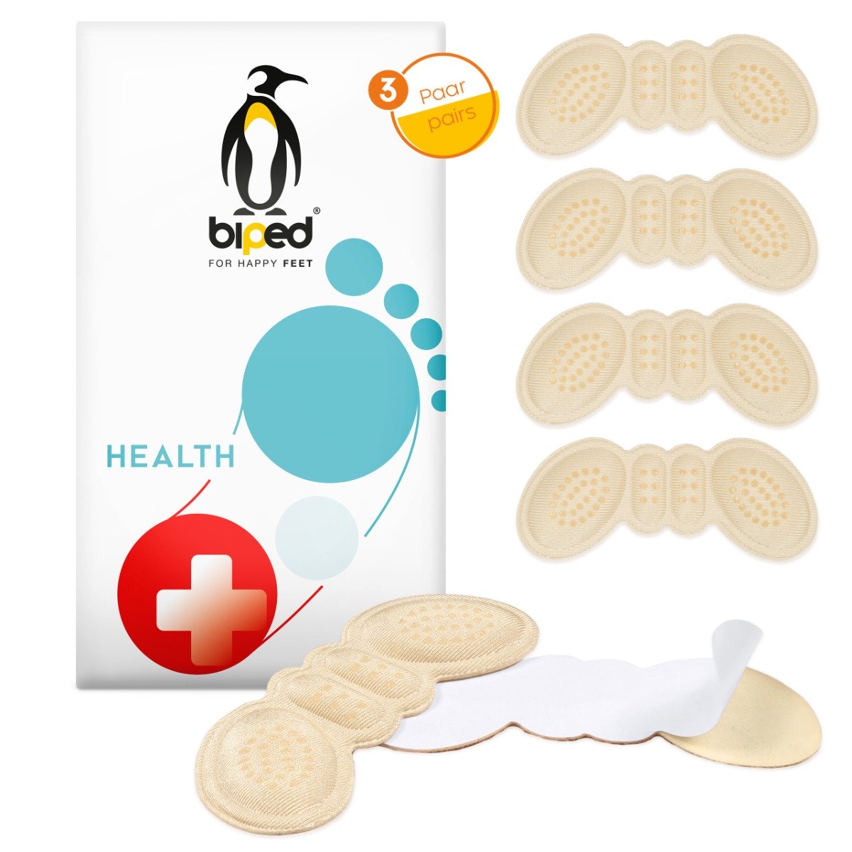 biped HEALTH 3 Paar Fersenpolster für zu große Schuhe - Fersenschützer genoppt - selbstklebende Fersenkissen zur Vorbeugung von Blasen und Wundscheuern