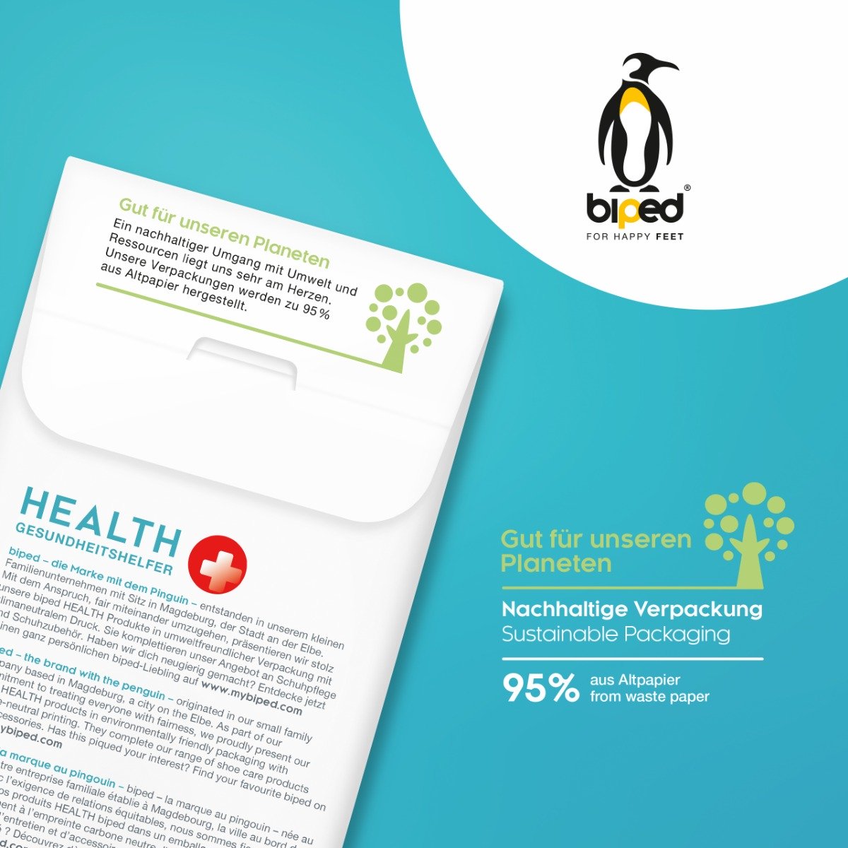 - GUT FÜR UNSEREN PLANETEN - biped HEALTH Fersenkissen erhalten Sie der Umwelt zuliebe in nachhaltiger Verpackung