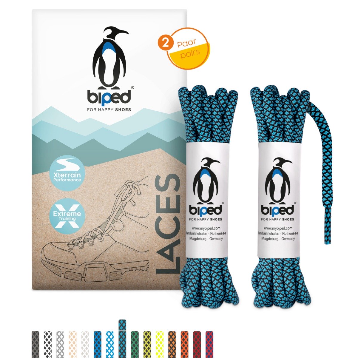 biped LACES 2 Paar bicolor Rope Schnürsenkel rund aus Polyester ø 4,5 mm extra robust - reißfeste bunte Schuhbänder für Sneaker, Arbeitsschuhe, Outdoor, Trekking und Sport, Wanderschuhe und Stiefel