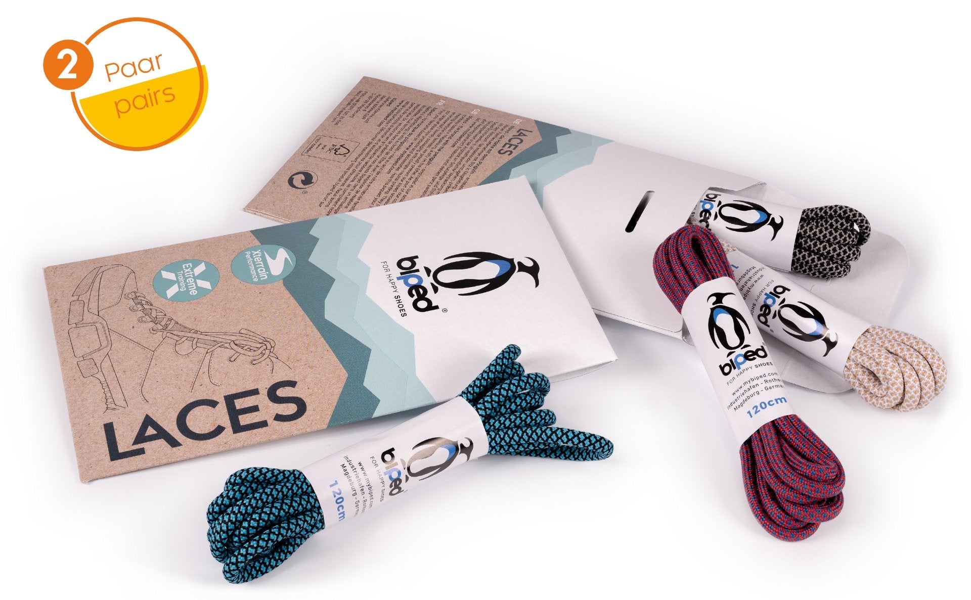 - GUT FÜR UNSEREN PLANETEN - biped LACES in vielen verschiedenen Designs, alle in nachhaltiger Verpackung