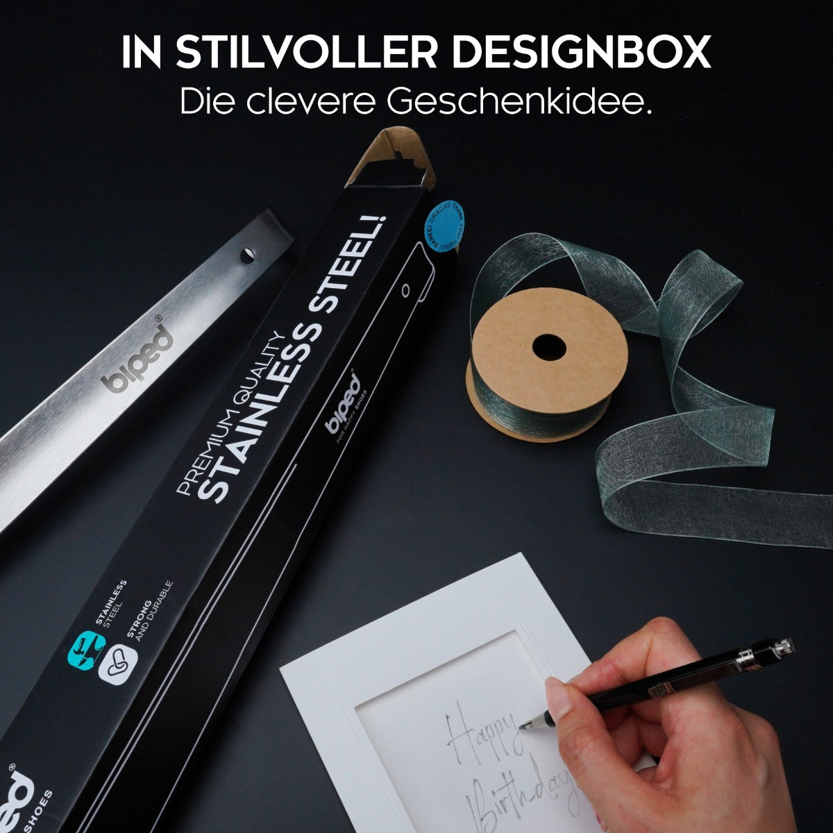 Komfort trifft Design: Langer Metall Schuhanzieher, liebevoll verpackt