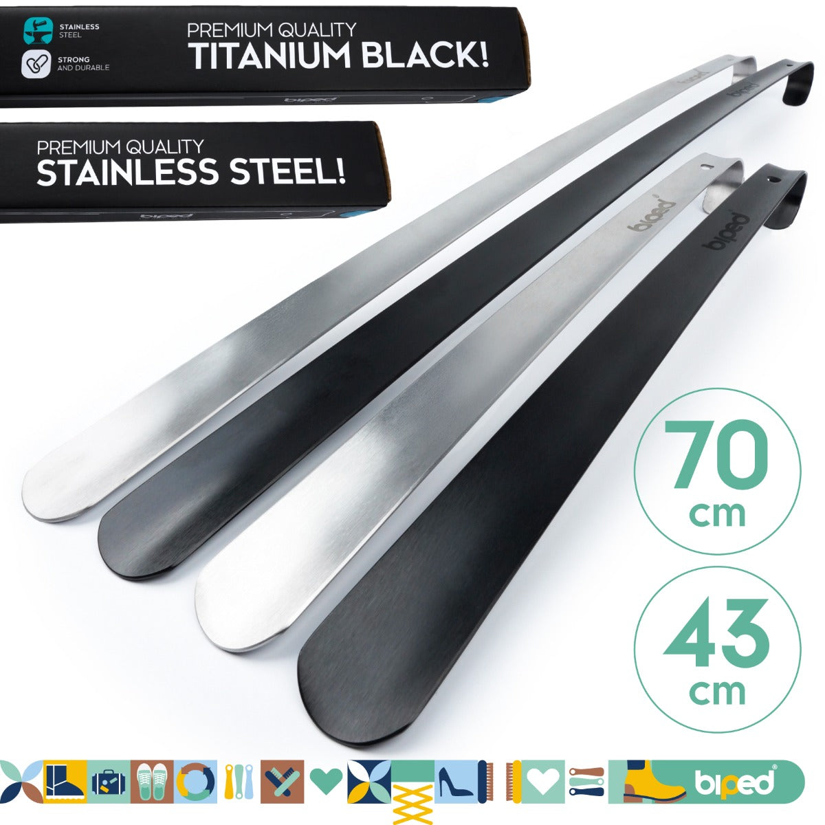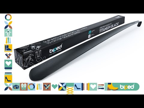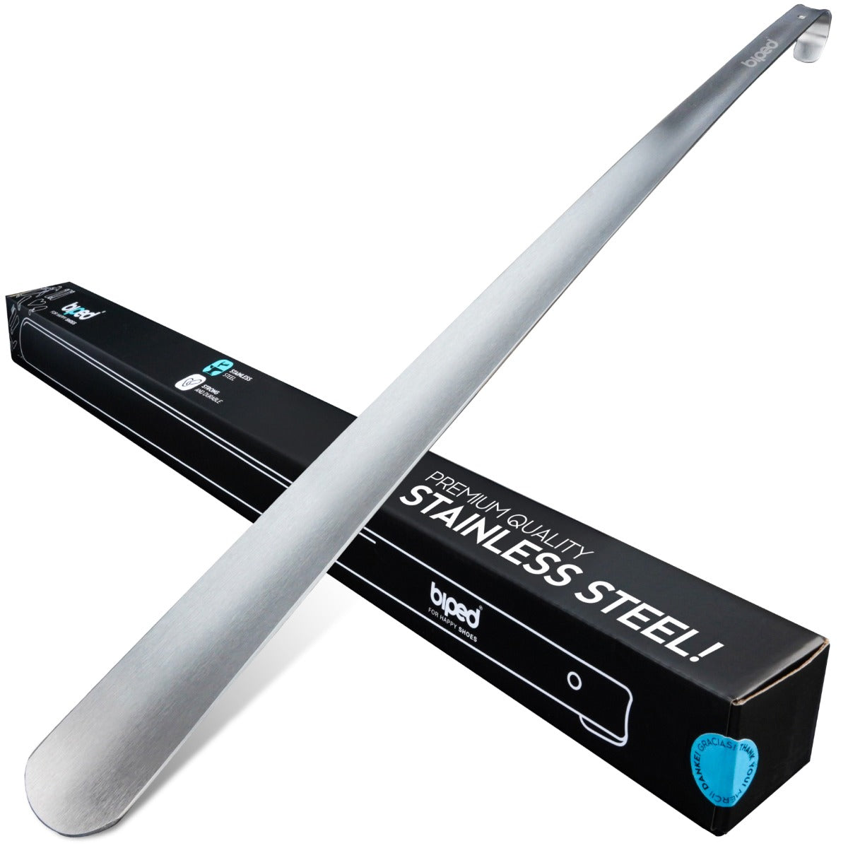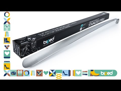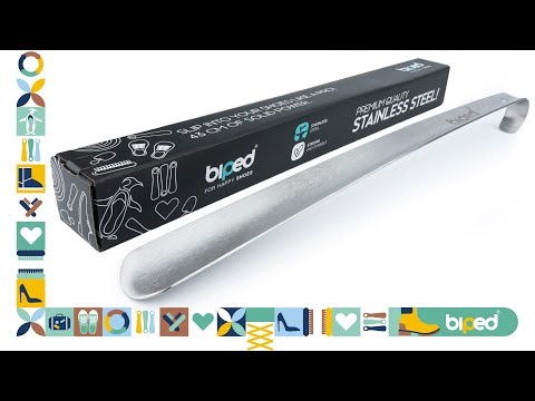 biped Metall Schuhlöffel lang, aus gebürstetem Edelstahl - Extra stabiler Schuhanzieher in dekorativer Geschenkbox - Rückenschonender langer Schuhlöffel in Premium Qualität
