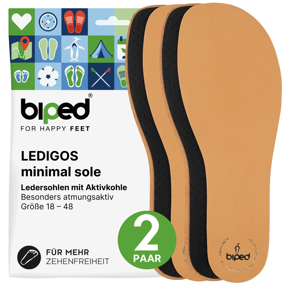 biped minimal sole LEDIGOS - 2 Paar Einlegesohlen für Minimal- & Barfußschuhe - Premium Leder Einlagen mit Aktivkohle - Schuheinlagen für Erwachsene und Kinder