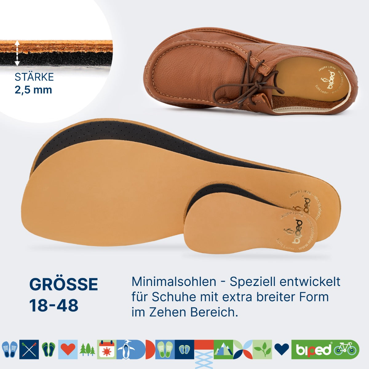 Leder Einlegesohle für Minimal- und Barfußschuhe Damen, Herren und Kinder