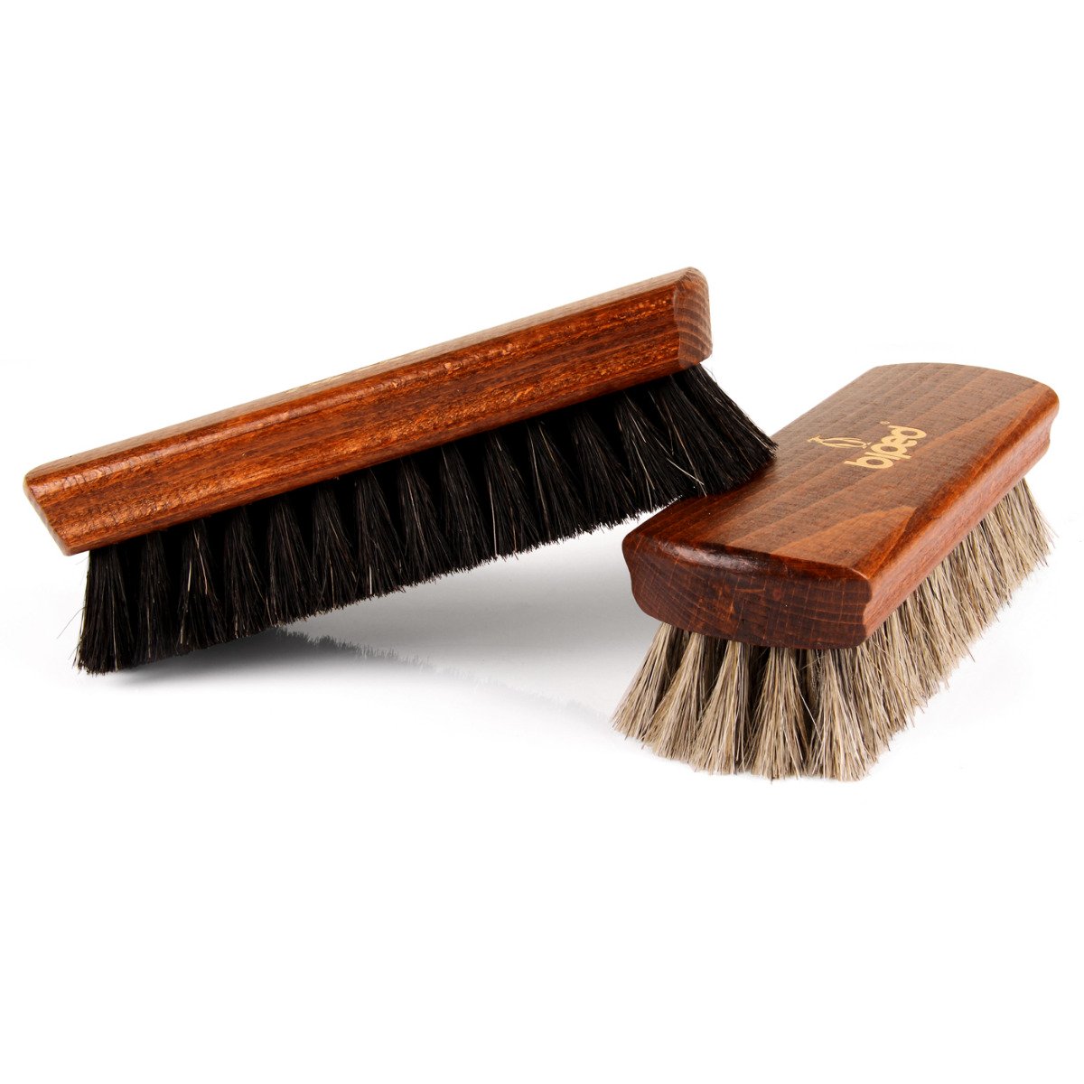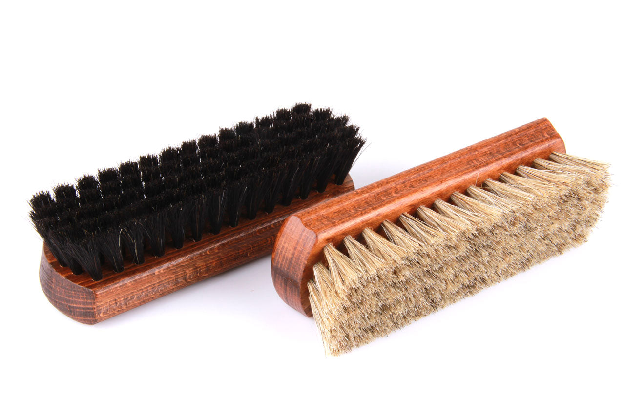 Wir empfehlen unsere biped Glanzbürsten für die Pflege Ihrer Glattleder Schuhe, Taschen, Jacken und Polstermöbel. Benutzen Sie für dunkles Leder Bürsten mit schwarzem Rosshaar und für helles Glattleder, Bürsten mit hellem Rosshaar.