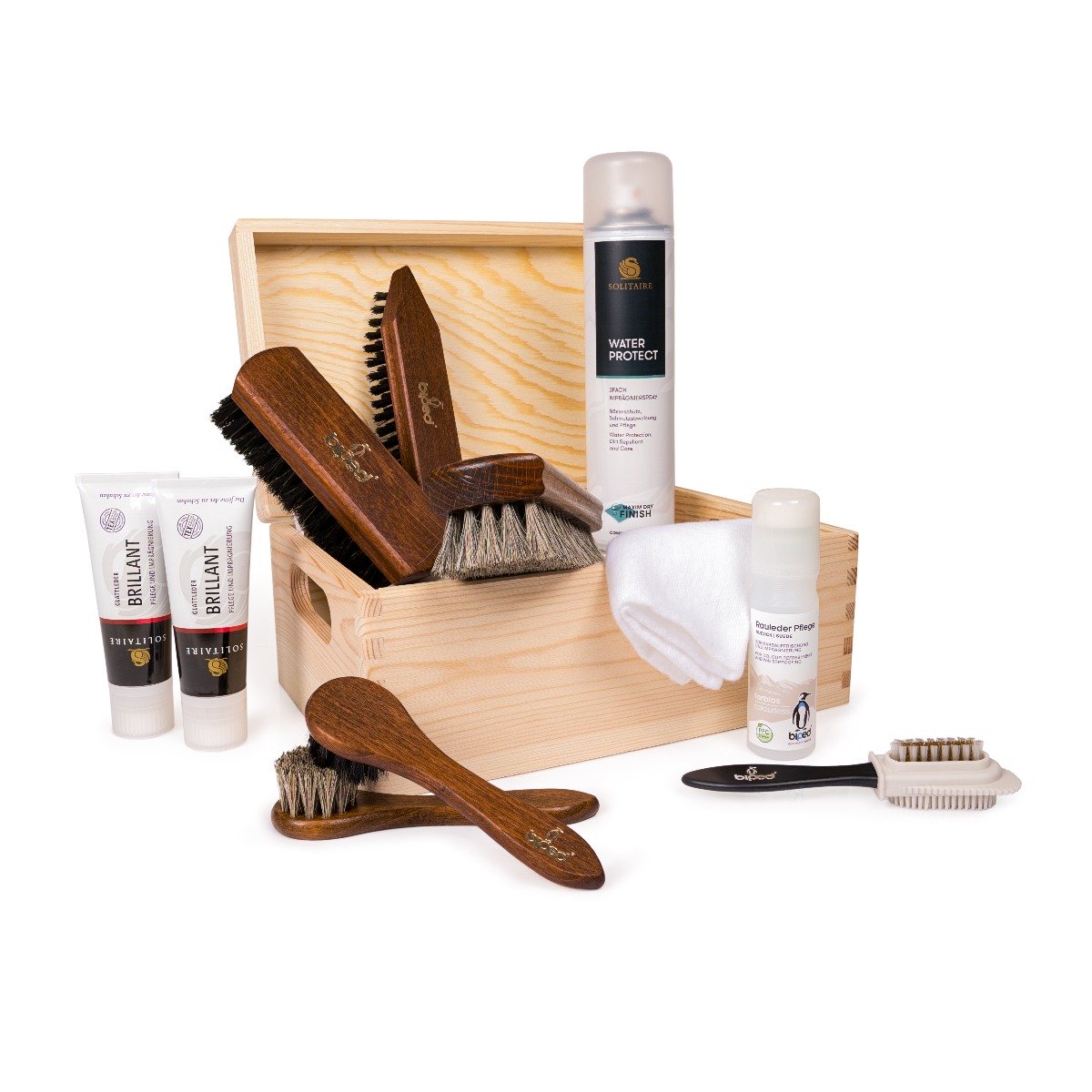 mit vielen biped Schuhbürsten und Schuhpflege Produkten